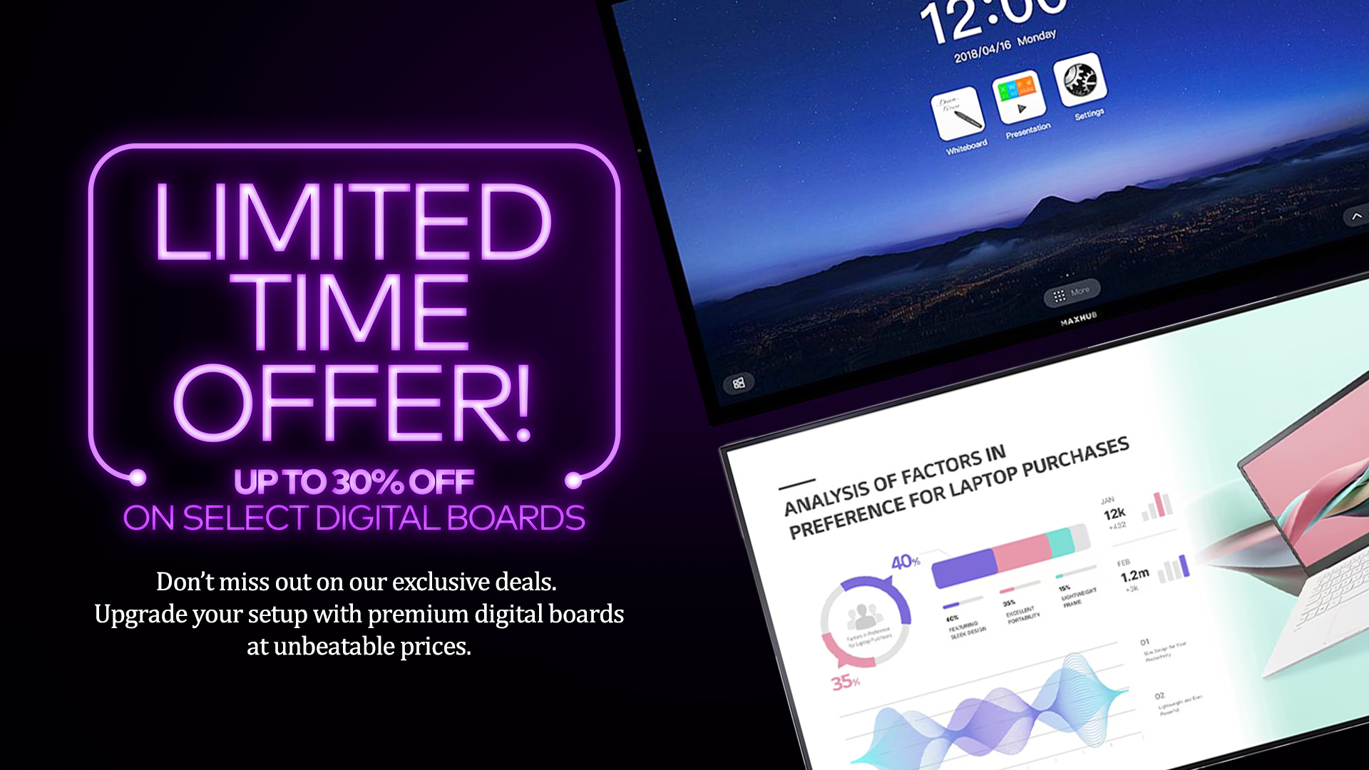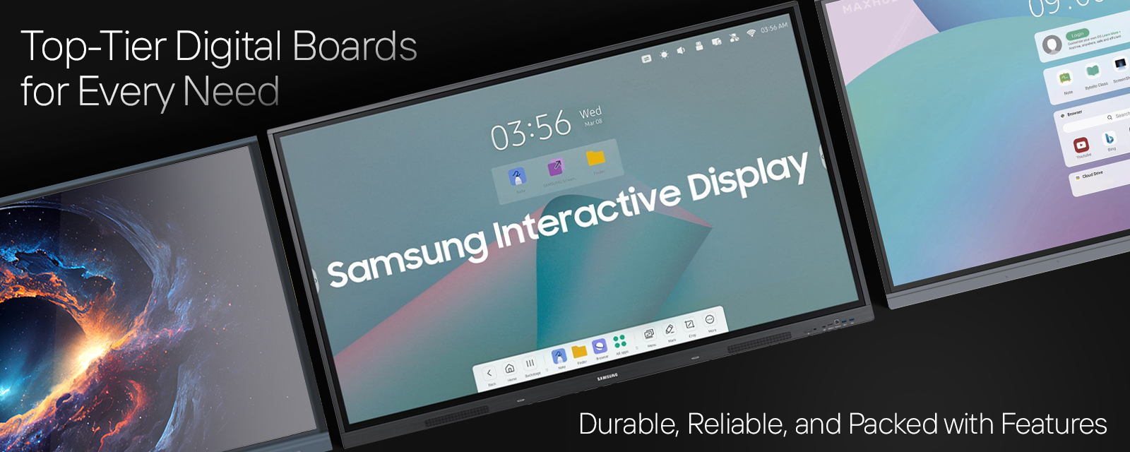 We offer a wide range of digital boards, including interactive flat panels, smart boards, digital whiteboards, and touch screen displays. Each type is available in various sizes and with different features to suit your specific needs.